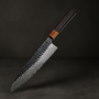 Le Gyuto, aussi appelé couteau de chef, est l’un des couteaux les plus indispensables en cuisine. Conçu pour être un outil polyvalent, il permet de trancher, émincer, hacher et ciseler avec une grande aisance. Sa lame longue et légèrement incurvée facilite le mouvement de balancier, offrant un confort d’utilisation aussi bien pour les découpes rapides que pour les préparations plus précises. Que ce soit pour la viande, le poisson, les légumes ou les herbes, le Gyuto est pensé pour devenir l’allié principal de votre plan de travail.