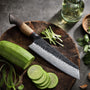 Le Kiritsuke, aussi appelé couteau de chef, est l’un des couteaux les plus indispensables en cuisine. Conçu pour être un outil polyvalent, il permet de trancher, émincer, hacher et ciseler avec une grande aisance. Sa lame longue et légèrement incurvée facilite le mouvement de balancier, offrant un confort d’utilisation aussi bien pour les découpes rapides que pour les préparations plus précises. Que ce soit pour la viande, le poisson, les légumes ou les herbes, le Kiritsuke est pensé pour devenir l’allié principal de votre plan de travail.