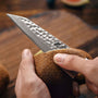 Là où la plupart des couteaux classiques sont aiguisés à 22°, les couteaux japonais en acier damas de Maison Yamato sont affûtés à 15°. Cet angle plus fin offre un tranchant chirurgical, capable de réaliser des découpes nettes et précises à chaque geste.