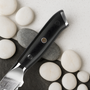 Là où la plupart des couteaux classiques sont aiguisés à 22°, les couteaux japonais en acier damas de Maison Yamato sont affûtés à 15°. Cet angle plus fin offre un tranchant chirurgical, capable de réaliser des découpes nettes et précises à chaque geste.