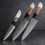 Trio professionnel : puissance du Kiritsuke, polyvalence du Gyuto, précision de l’Office.